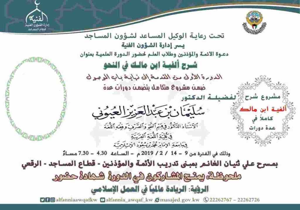الرئيسية سليمان عبد العزيز العيوني شرح ألفية ابن مالك (الكويت) – الشيخ سليمان بن عبد العزيز العيوني شرح ألفية ابن مالك (الكويت) – الشيخ سليمان بن عبد العزيز العيوني سليمان عبد العزيز العيوني 2 تعليقات 12291 مشاهدة رابط واحد مباشر لتحميل السلسلة كاملة بصيغة 605,5MB) MP3): اضغط هنا لتحميل الدروس منفردة اضغط بالزر الأيمن للفأرة ثم اختر [حفظ باسم] أو [save as] أو [enregistrer sous] المجلس 01 المجلس 02 المجلس 03 المجلس 04 المجلس 05 المجلس 06 المجلس 07 المجلس 08 المجلس 09 المجلس 10 المجلس 11 المجلس 12 لغة عربية